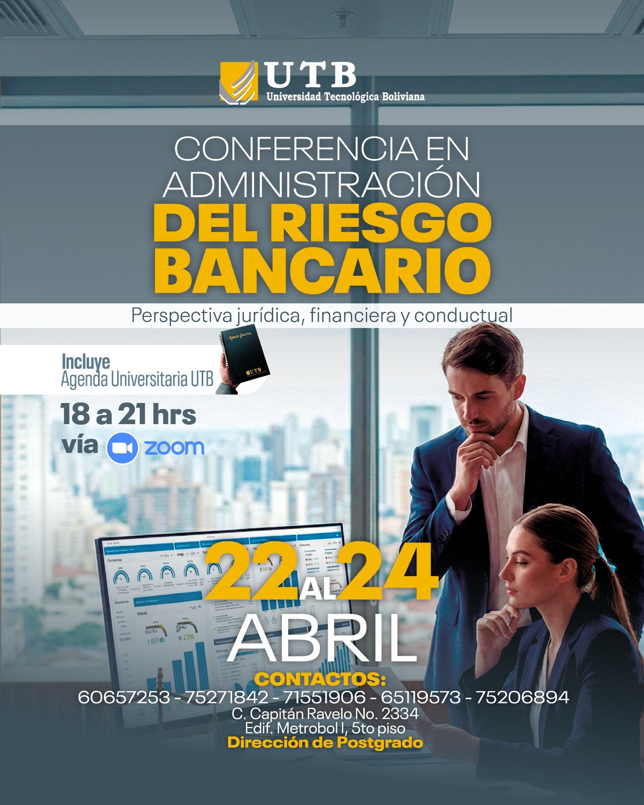 Inscríbete a la Conferencia en Administración de Riesgo Bancario y conoce la perspectiva jurídica, financiera y conductual Fechas: del 22 al 24 de abril Carga Horaria: 35 horas académicas Dirigido …
