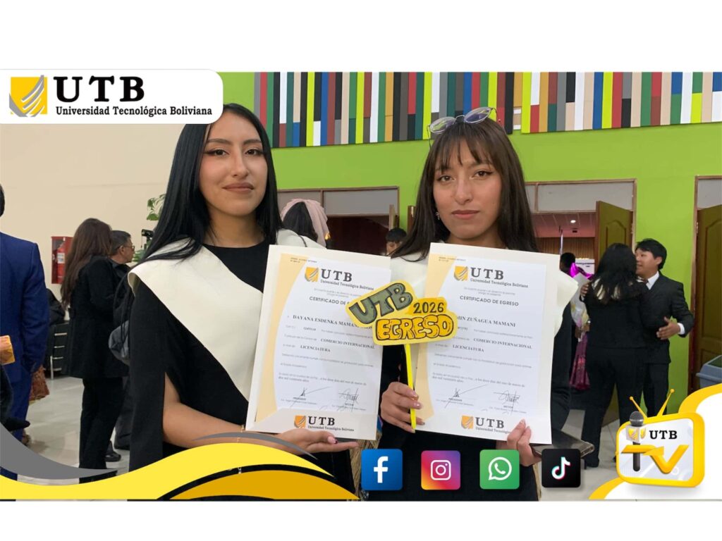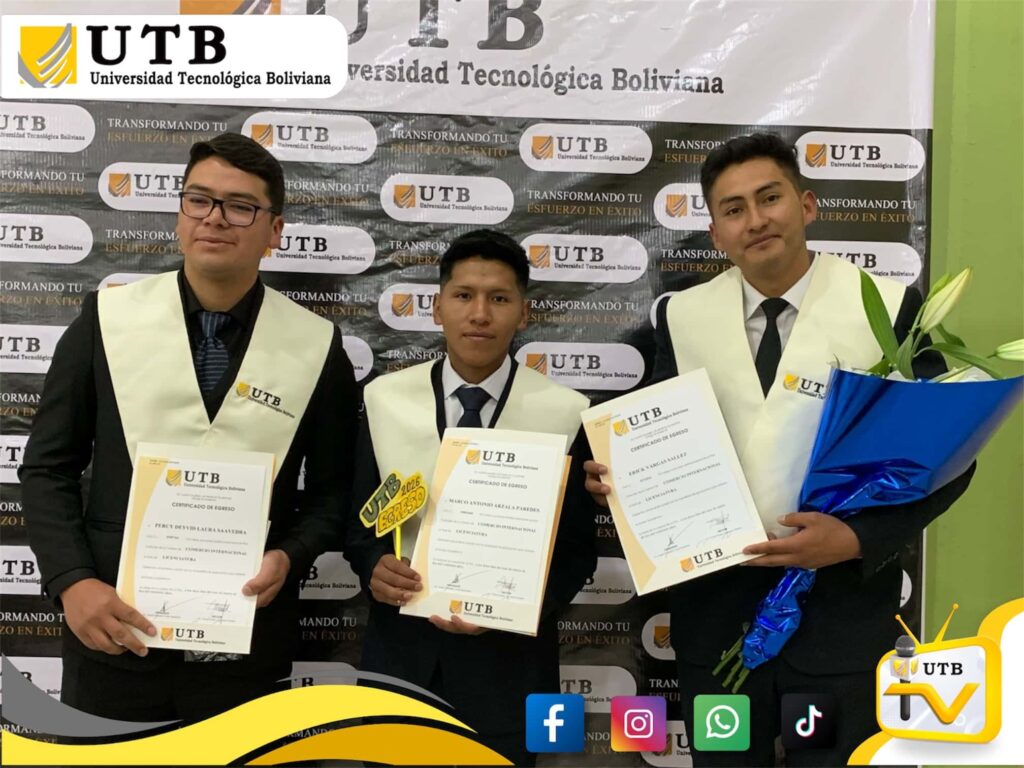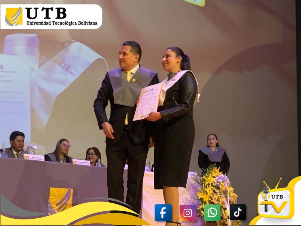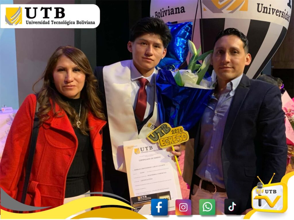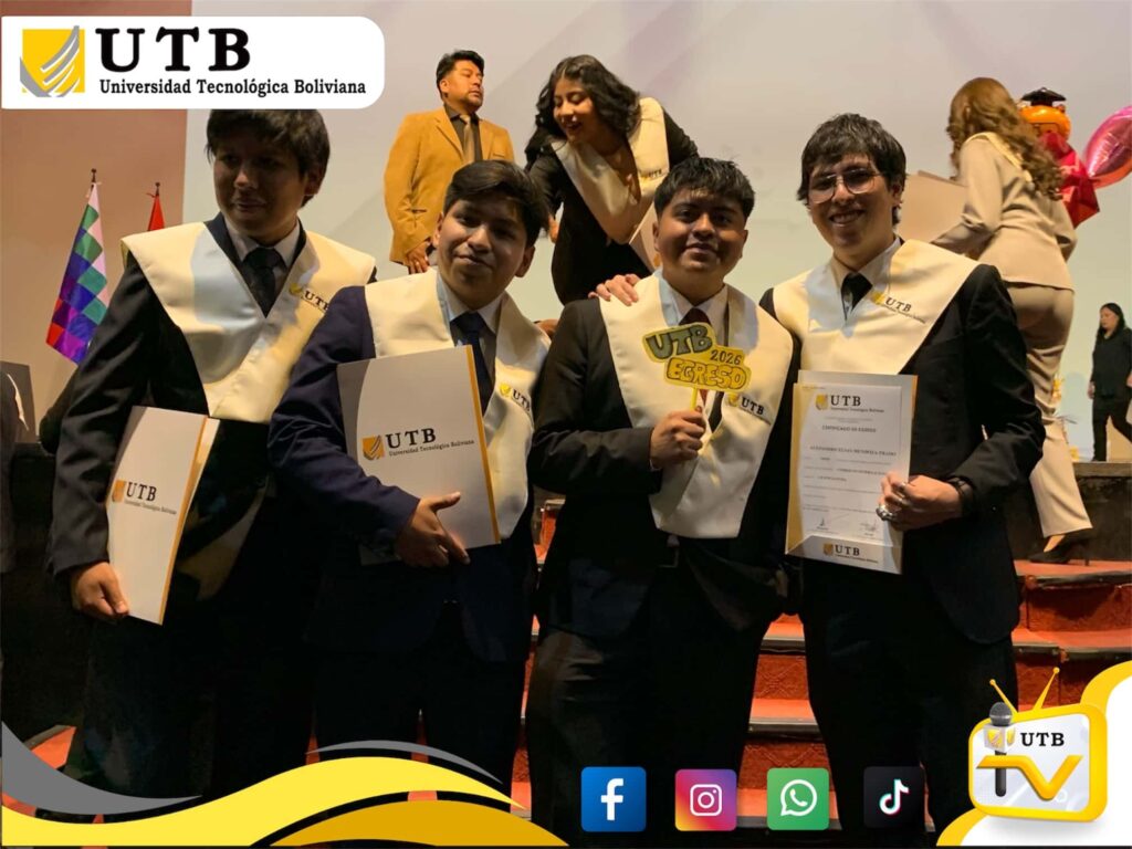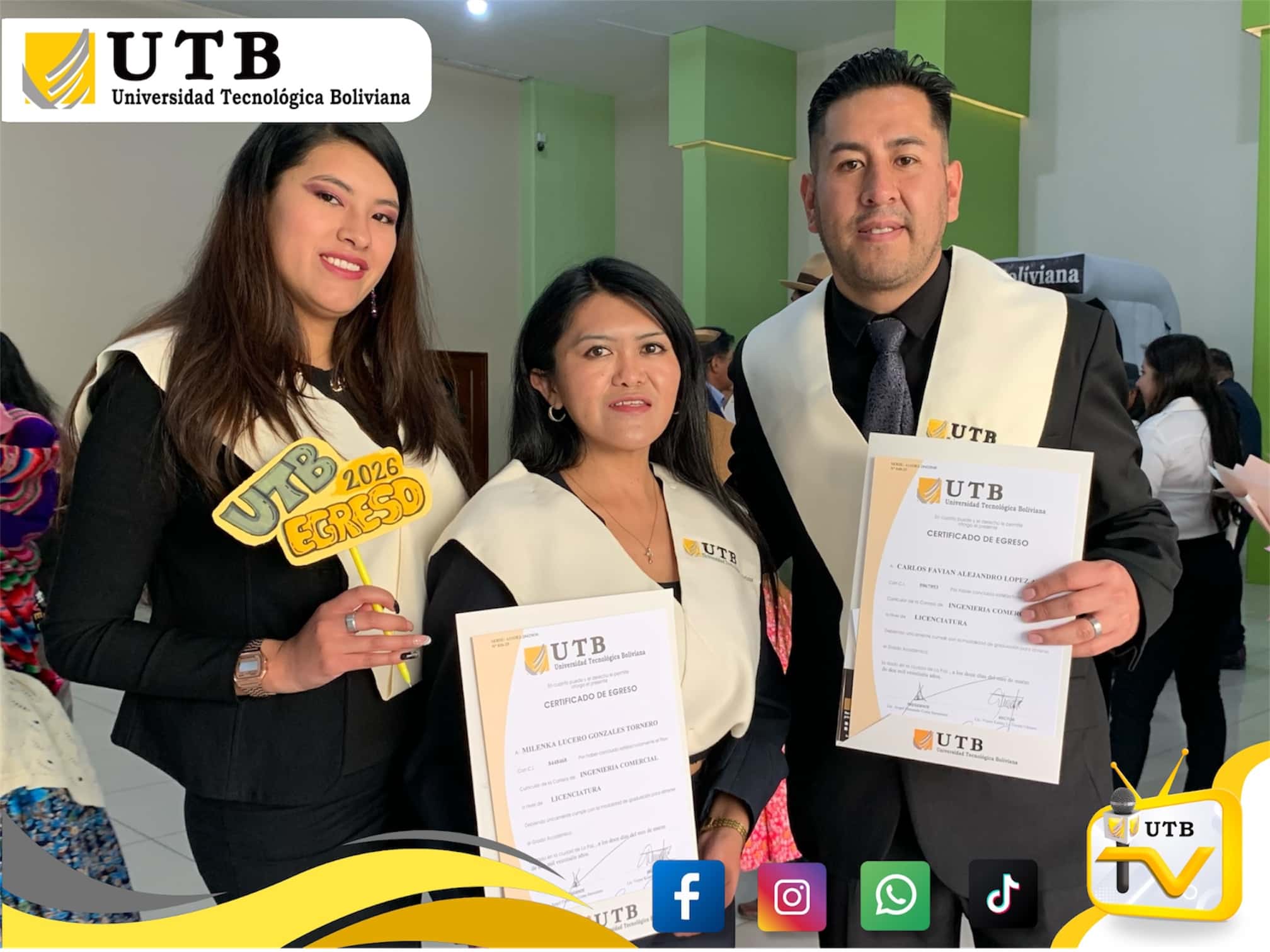 El pasado 21 de abril, la Universidad Tecnológica Boliviana llevó a cabo con gran éxito el Solemne Acto de Egreso, un evento significativo que marcó un momento de orgullo y emoción para toda la comunidad universitaria. Durante esta ceremonia, nuestros estudiantes culminaron una etapa fundamental de su formación académica, dando un paso decisivo hacia la obtención de su título profesional. El egreso representa el resultado del esfuerzo, la dedicación y la constancia demostrados a lo largo de su trayectoria universitaria. En esta jornada participaron estudiantes de las siguientes carreras: Ingeniería Comercial, Comercio Internacional, Ventas y Comercialización, Administración de Empresas y Contaduría Pública, quienes celebraron este importante logro acompañados de sus familias y autoridades académicas. La Universidad Tecnológica Boliviana reafirma su compromiso con la formación de profesionales altamente capacitados, preparados para enfrentar los desafíos del entorno laboral y contribuir al desarrollo del país. Felicitamos a todos nuestros egresados por este importante logro y les deseamos el mayor de los éxitos en el camino hacia su titulación y ejercicio profesional.