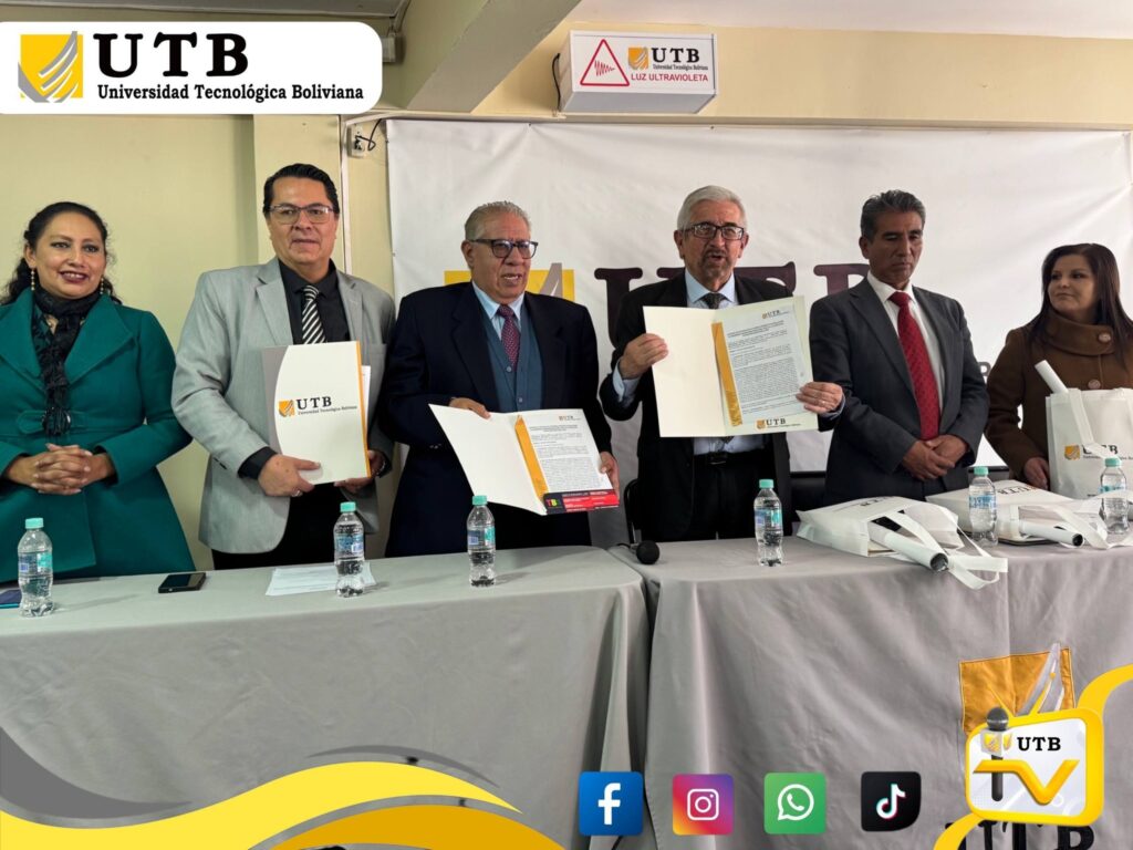 La Universidad Tecnológica Boliviana firmó un convenio de cooperación interinstitucional con el Instituto Tecnológico Boliviano Suizo, en un acto desarrollado en instalaciones de nuestra casa de estudios, consolidando una alianza orientada al fortalecimiento académico y a la generación de nuevas oportunidades de formación. 🤝📚✨